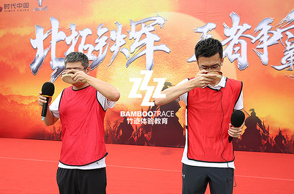 竹迹体验教育《王者争霸》大型拓展培训课程,是以三国为背景,由忠勇而智慧的企业精英战士组成的三个国家进行的龙争虎斗的活动。课程设计独特,布局周全,每一个活动的环节都紧紧相连,相辅相成,每一名队员都能充分的融入活动中来,让参与者身临其境,达到忘我的境界。 《王者争霸》问世以来,得到了参训单位的广泛认可与一致好评。对参与者的合作能力、领导能力、决策能力、智力都具有相当的挑战,为各参训单位提供了一种反映历史生活与户外拓展相结合的全新培训题材。